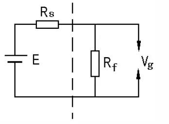 圖3給出了電纜耐壓試驗(yàn)等效電路,其中Rs為試驗(yàn)設(shè)備內(nèi)阻,E為設(shè)備所能提供的直流電壓值,電阻Rf與臨界擊穿電壓為Vg的間隙并聯(lián)代表故障點(diǎn)。