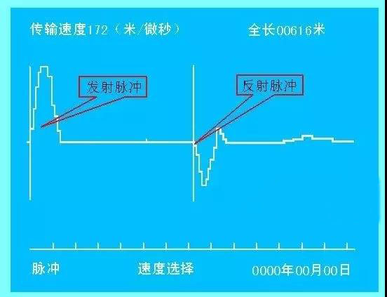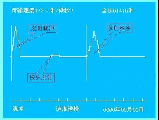 測(cè)試結(jié)論:圖3的測(cè)試波形,按正常的理論無法解釋,反射脈沖的位置剛好在接頭位置附近,所以只能考慮是接頭的反射,但是接頭反射波形一般幅度較小,所以存凝,但是不影響對(duì)故障距離的基本判斷(根據(jù)后來故障點(diǎn)開挖結(jié)果,出現(xiàn)這種測(cè)試波形,主要原因,是故障點(diǎn)完全泡在污水中,所以現(xiàn)成了好似接地的反射波形)。